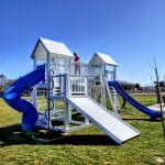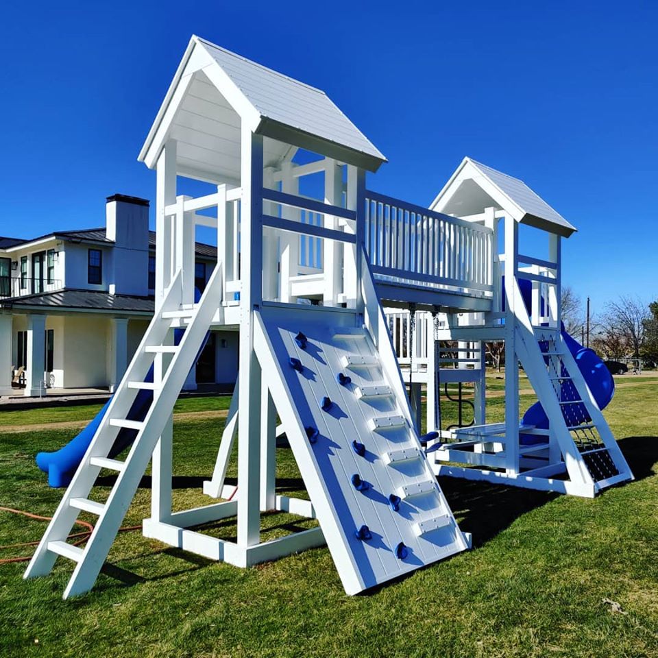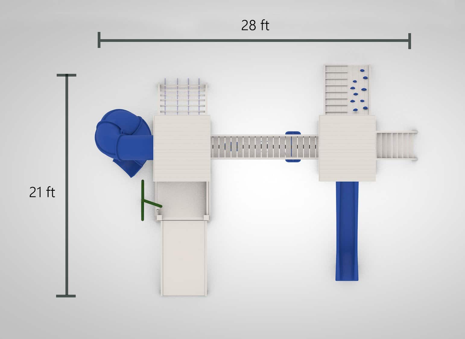 The measurements below are showing the dimensions of the playset. It is recommended that you include a 6ft fall zone perimeter around each side of the playset when measuring your space.
