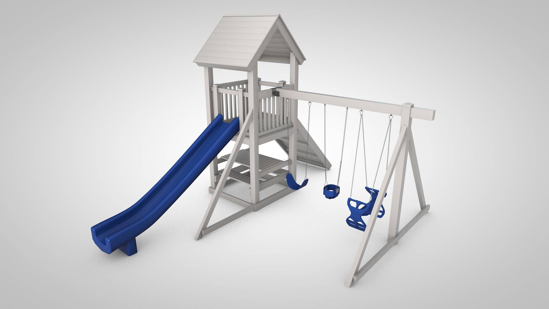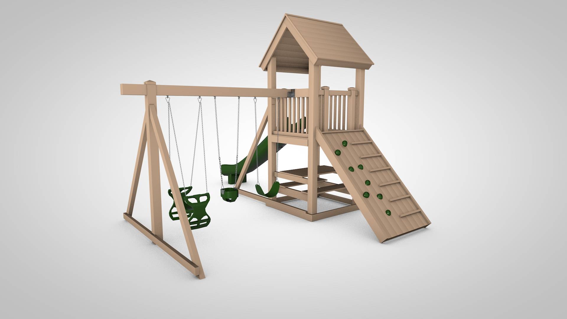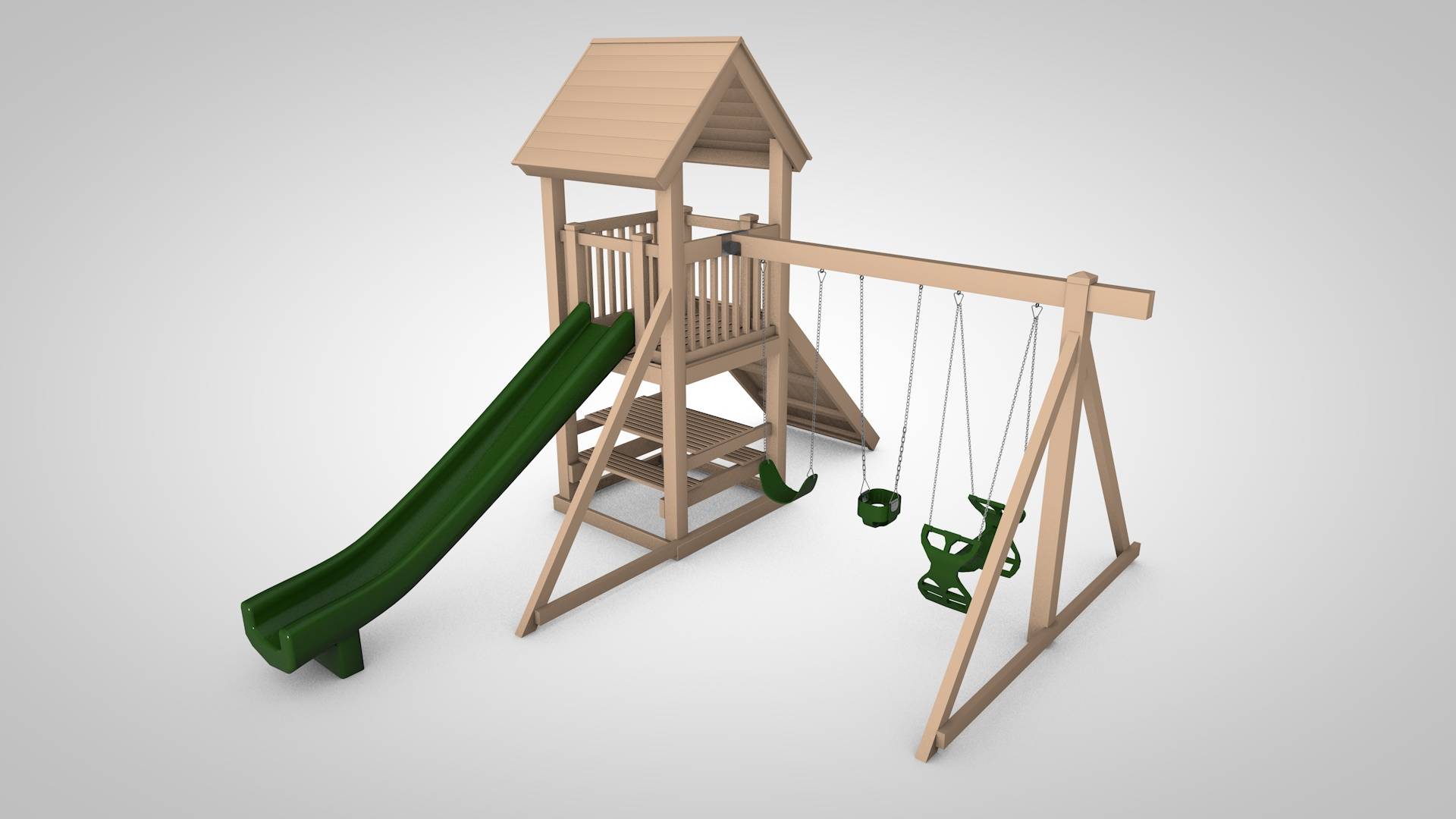 Please select from the configuration order below. The measurements are showing the dimensions of the playset. It is recommended that you include a 6ft fall zone perimeter around each side of the playset when measuring your space.