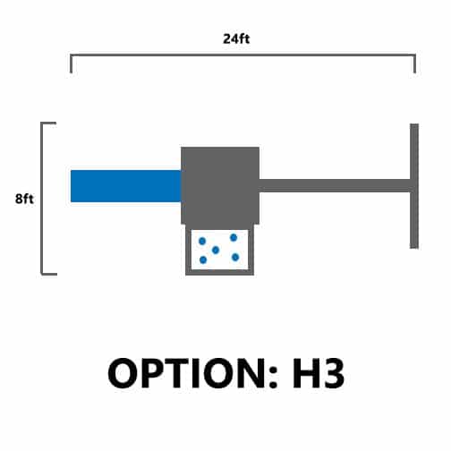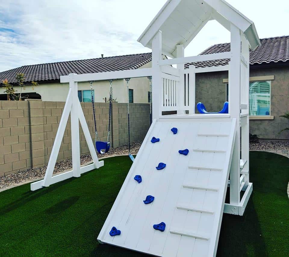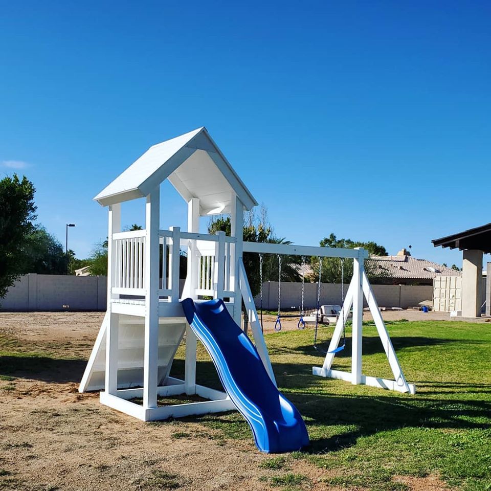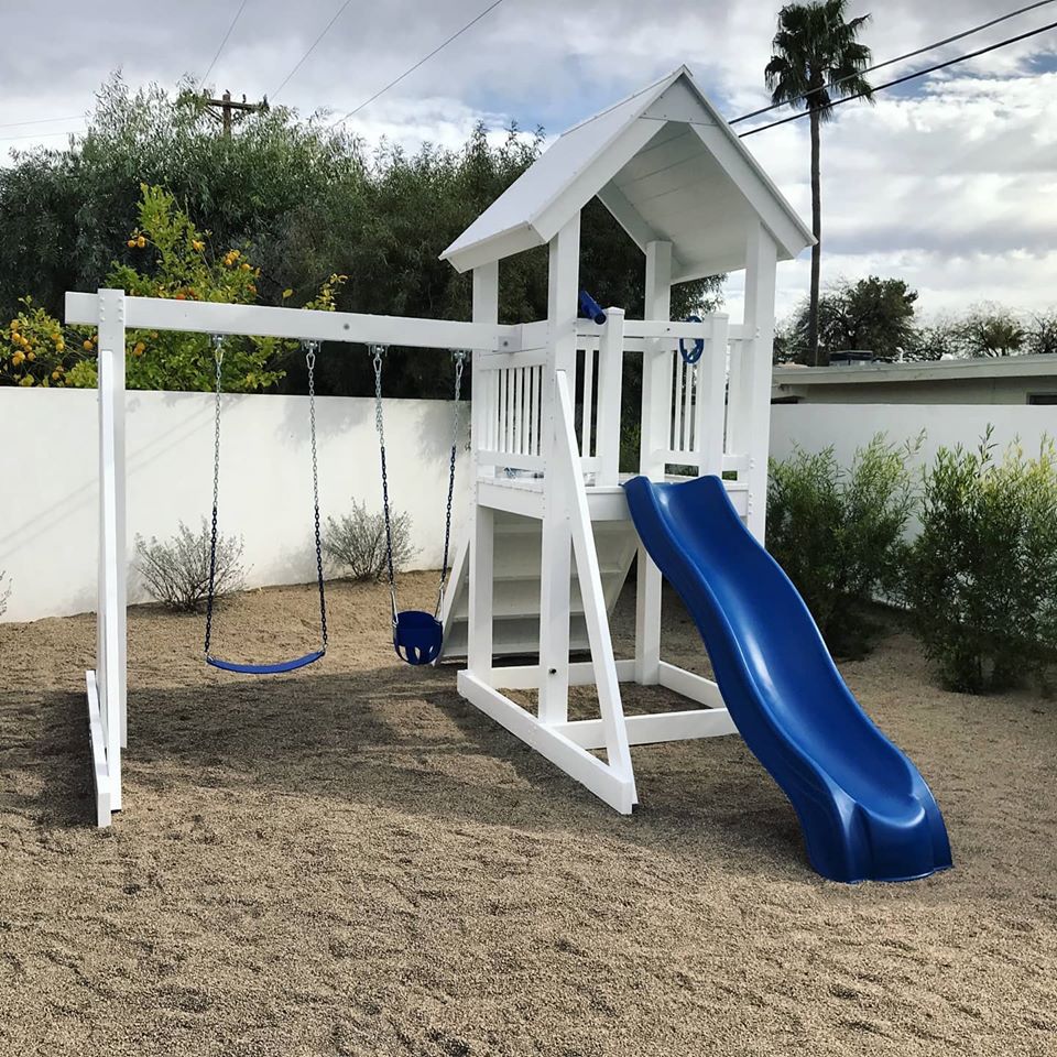 Please select from the configuration order below. The measurements are showing the dimensions of the playset. It is recommended that you include a 6ft fall zone perimeter around each side of the playset when measuring your space.